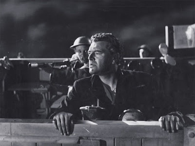 En Scott en la Antártida (1948), Charles Frend materializaba el más genuino sentido de la aventura con unos hombres enfrentados a la naturaleza, en las condiciones más extremas, en un paraje inhóspito. En esta también esplendida producción de la Ealing, El mar cruel (The cruel sea, 1953), en la que Eric Ambler adapta la obra de Nicholas Monsarrat, aplica parecido planteamiento, y con equiparables logros, aunque sustituyendo el entorno helado del Polo Sur por el mar, al que la voz del protagonista, el comandante Erickson (magnífico Jack Hawkins) considera el único villano (‘Esta es una historia de la Batalla del Atlántico, la historia de un océano, dos barcos, y un puñado de hombres. Los hombres son los héroes, las heroínas los navíos. El único villano es el mar, el cruel mar, que el hombre ha hecho más cruel’ ),son sus palabras introductorias). Porque el villano no es el enemigo, los alemanes, con respecto a los que, en la única ocasión en que se hacen presencia, cuando rescatan a los supervivientes de un submarino (cuerpos sin resuello a los que no se distingue el rostro), Erickson señala que son iguales que ellos.