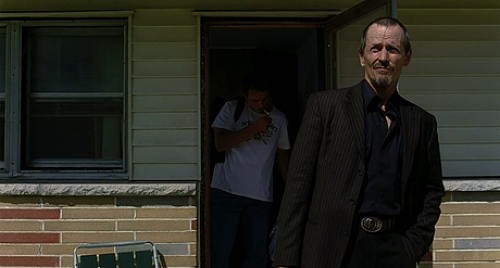 Pero ese pasado compartido irrumpirá como una sombra que arrasará toda esa luz que se había sembrado. Ese monstruo del pasado será despertado, indirectamente, por dos monstruos, dos crueles delincuentes, Leland (Stephen McHattie) y Billy (Greg Bryk). Su presentación ya anuncia la entraña o el curso (cual muda) de la narración: Ambos salen de la habitación del motel que ocupaban, prestos para marcharse en su coche. Billy se introduce en la oficina, y la cámara revela dos cadáveres en el suelo, los que han matado. Una niña aparece, con expresión asustada. Billy la apunta, y dispara. Su contraplano, su plano sucesivo, es el grito de la hija pequeña de Tom, Sarah, que ha despertado asustada gritando que vienen los monstruos. Ciertamente, vendrán muchos monstruos, y entre ellos el que era su padre en el pasado, aquel que torturaba en los ojos ajenos con un alambre.