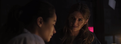 A la morgue traen el cadáver de una chica, Hannah (Kirby Johnson), a la que en la secuencia introductoria han practicado un exorcismo. Fue tres meses atrás, y ahora su cadáver presenta heridas profundas en cadera y cuello, y quemaduras en medio cuerpo. Esa mujer poseída (el título original es de hecho The possesion of Hannah Grace) representará el reflejo siniestro, el Doble o Sombra, la figura que representa el fantasma o monstruo emocional con el que lidia en su interior Megan, sus heridas y quemaduras interiores. De hecho, Hannah se recupera de sus heridas con las muertes de las que se nutre. En cierto, momento el padre habla de su hija como alguien que sufría una profunda depresión y ansiedad que le superaba. Como le ocurre a Megan. Resulta sugerente cómo se plantea la colisión entre sujeto y realidad, lo que se percibe y lo que es (aún más que en la propia narración, en la relación entre los personajes). Cuando Megan expresa sus dudas sobre ciertas situaciones extrañas o desconcertantes que ocurren en la morgue, como, significativamente. una enigmática sombra que entreve, piensan que son más bien reflejo de su trastorno emocional, de su discernimiento nublado u ofuscado por su circunstancia emocional herida. La anomalía no está en lo externo sino en ella.